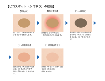高出力レーザーの衝撃波でメラニン色素を破壊し、シミを除去する治療です。